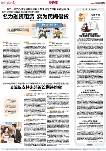 海口一男子办理车辆售后回租业务未按时支付租金被起诉,法院判决向租赁公司返还本金支付利息~~~