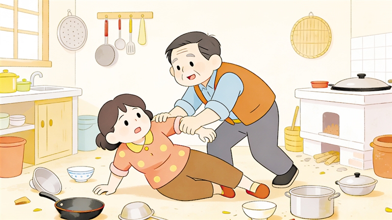 2025年10月的一天,万宁市东澳镇某村的一户人家内,因家庭琐事弥漫着紧张气氛。当天13时许,钟某的儿子与儿媳符某在家中发生争吵。情绪激动的符某冲到与钟某共用的厨房内,将铁锅、锅盖等物品摔砸在地,发出刺耳的声响。