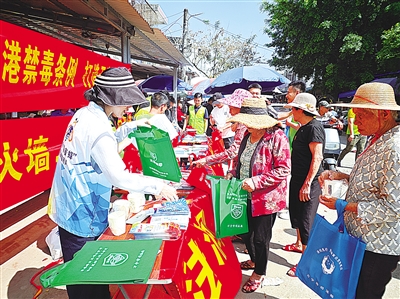 3月24日,万宁市司法局联合“小蜜蜂”普法宣讲团走进合山市场,将法治课堂搬到集市。