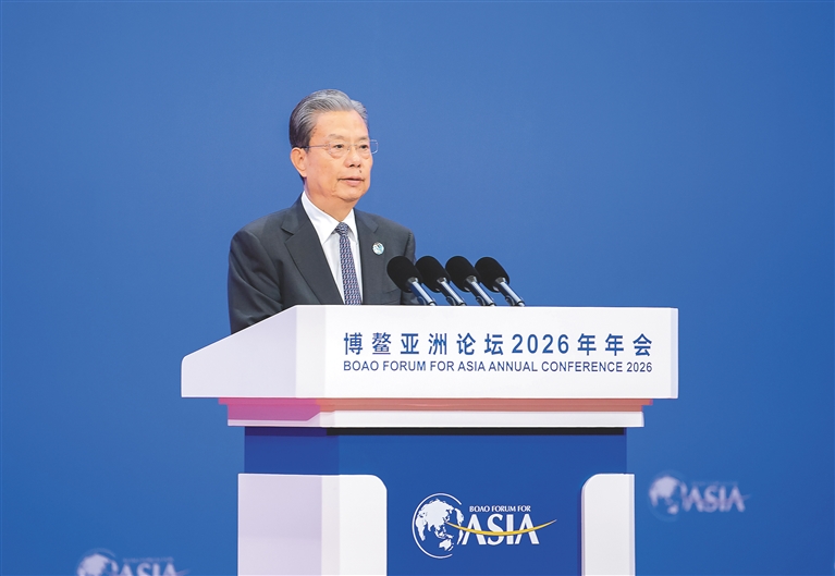 新华社海南博鳌3月26日电(记者孙奕 周慧敏)全国人大常委会委员长赵乐际26日上午在海南博鳌出席博鳌亚洲论坛2026年年会全体大会,并发表题为《把握正确方向 共创美好未来》的主旨演讲。新加坡总理黄循财、阿塞拜疆国民会议主席加法罗娃、斯里兰卡议长维克拉马拉特纳、哈萨克斯坦第一副总理斯克利亚尔、论坛理事长潘基文等来自60多个国家和地区的1600多名政界、工商界、智库和媒体代表参加。