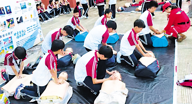 据了解,活动摒弃传统说教模式,以“游园式”体验形式,设置消防安全、交通安全、应急救护、预防溺水等多个互动科目。应急救护区,专业人员手把手教授心肺复苏、海姆立克急救法;交通安全、防溺水等环节通过情景模拟与互动问答,让学生在真实场景中学会规避风险、正确施救。“边玩边学、寓教于乐”的形式让安全知识变得生动鲜活,学生参与热情高涨。