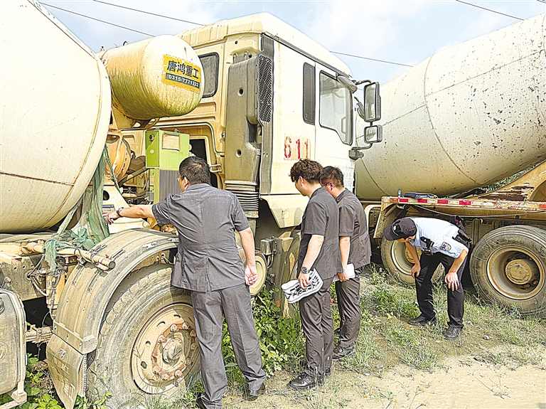 现场引擎轰鸣、动作紧凑,干警们全程监护、紧盯细节,反复检查固定情况。经过近3小时紧张有序的专业操作,3台搅拌车被稳稳固定在平板拖车上,顺利驶离现场,依法完成扣押交付。