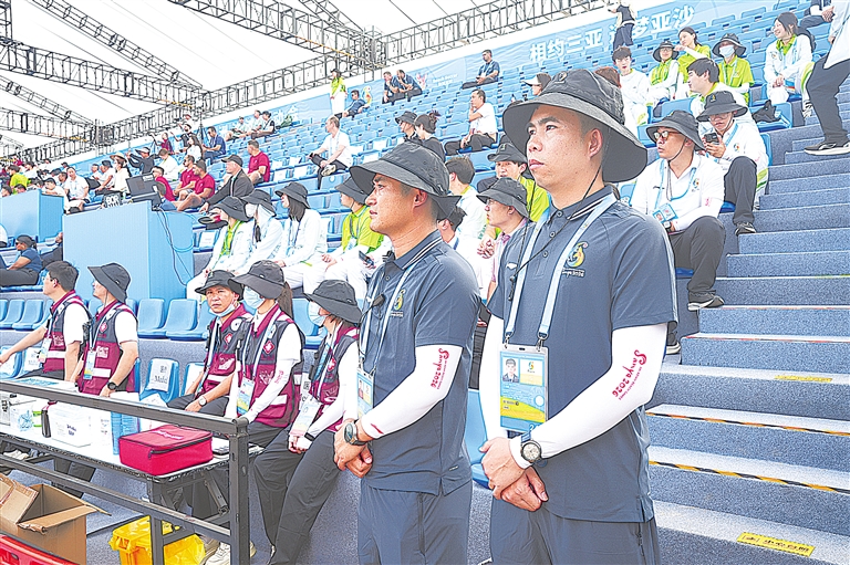 傍晚时分,第一天的比赛在欢呼声中落下帷幕,观众有序退场。颜文志与许瑞再次回到了各自的岗位上,在接下来的赛程里,位于这片金色沙滩上的“平安网”将越织越密,全力守护着每一份拼搏与梦想。